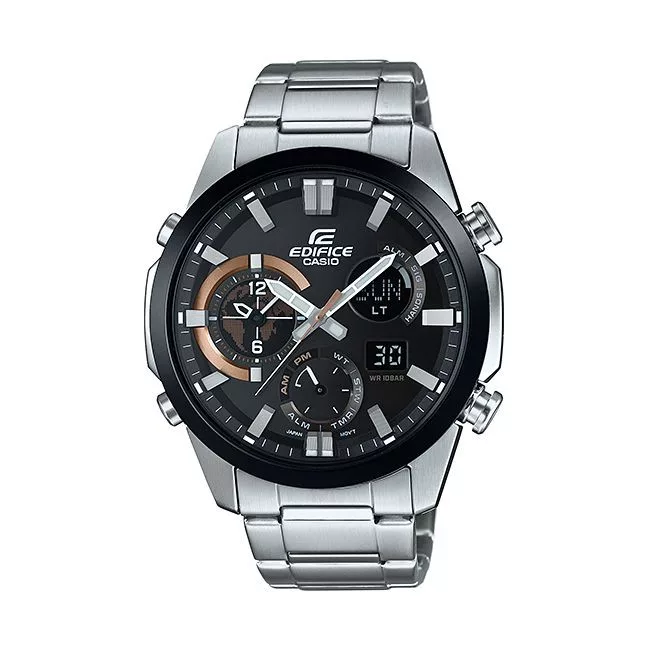 El material de la caja del reloj CASIO EDIFICE ERA-500DB-1AER es acero inoxidable, su color es plata, el material de la correa es acero inoxidable y su color es plata. El diámetro de la caja del reloj es 45 mm, su forma es rueda. El cristal del reloj es cristal (difícil de rayar), su mecanismo es cuarzo y su resistencia al agua es 10 atm (100 m) (apto para nadar).