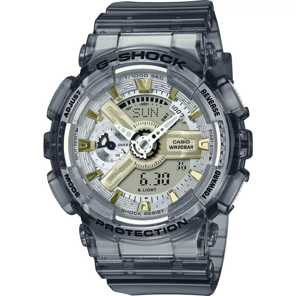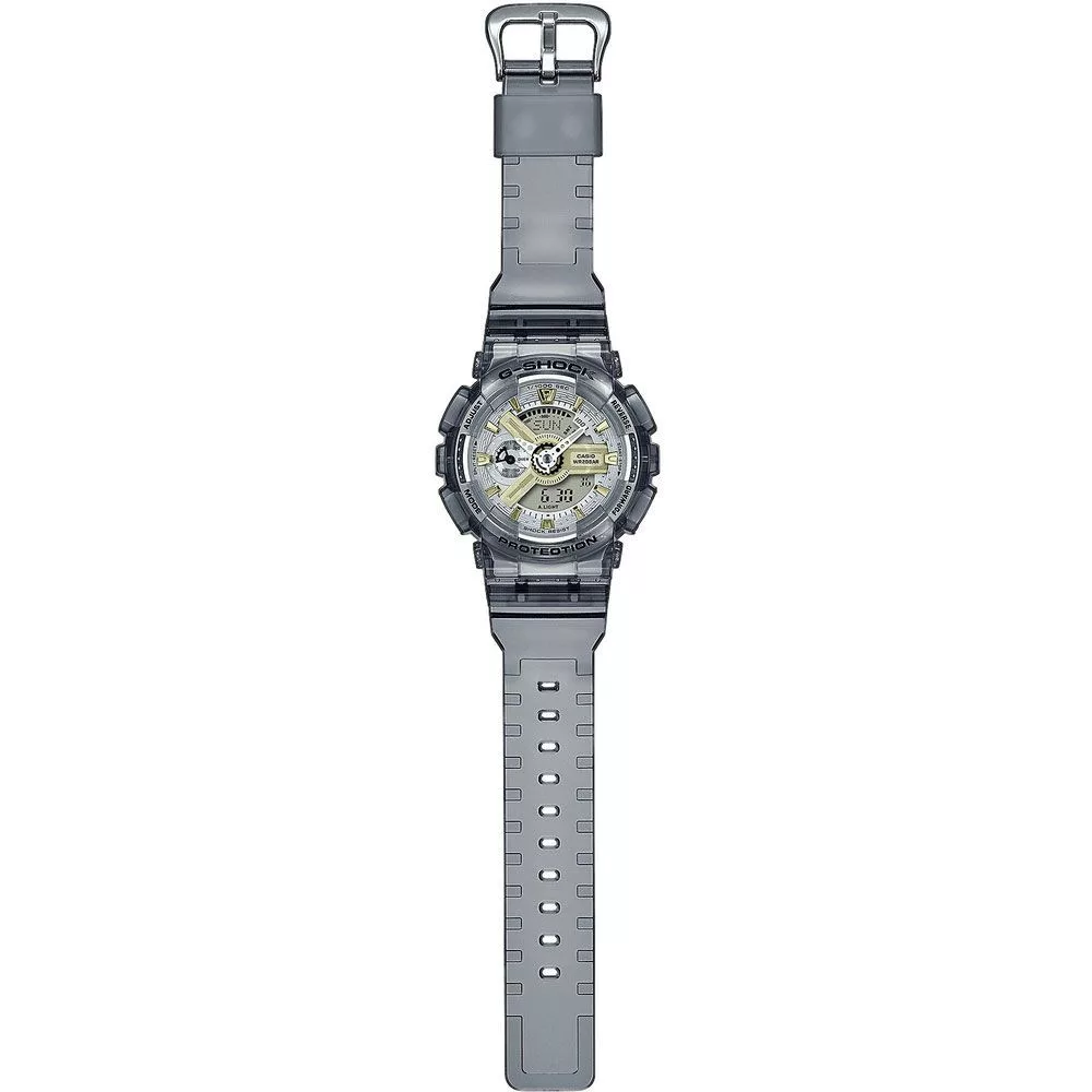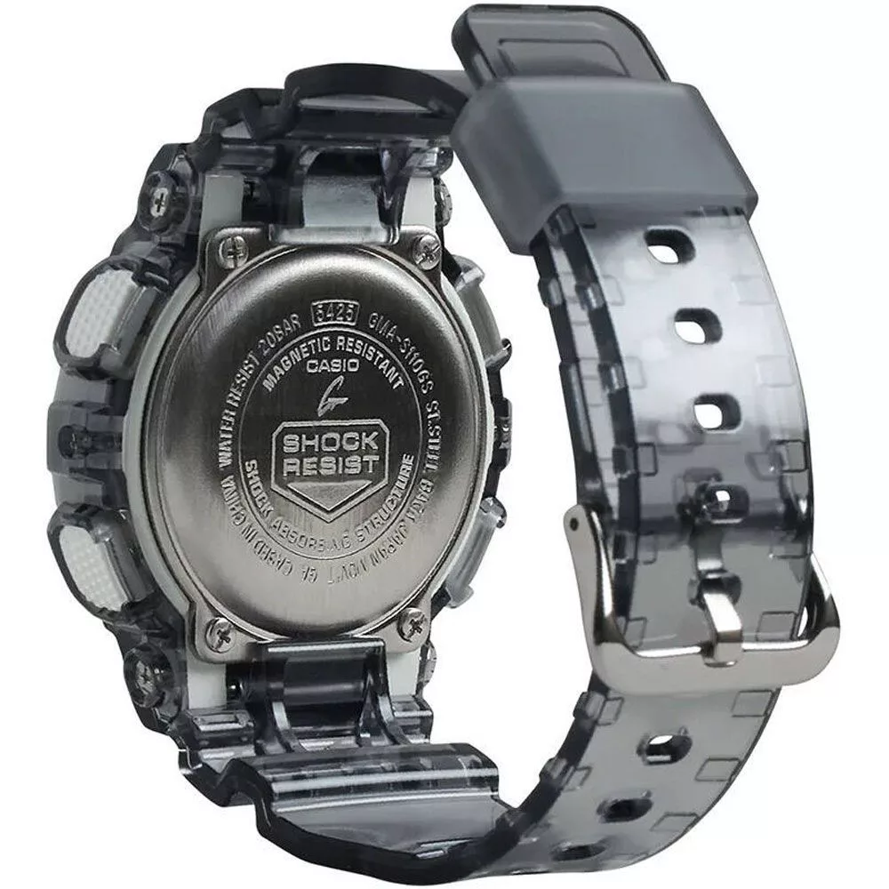 El material de la caja del reloj Casio G-Shock reloj de mujer GMA-S110GS-8AER es el plastico, su color es Átlátszó,Szürke, el material de la correa es el plastico y su color es Átlátszó,Szürke. El diámetro de la caja del reloj es 45 mm, su forma es rueda. El cristal del reloj es cristal (difícil de rayar), su mecanismo es cuarzo y su resistencia al agua es 20 atm (200 m) (apto para buceo).