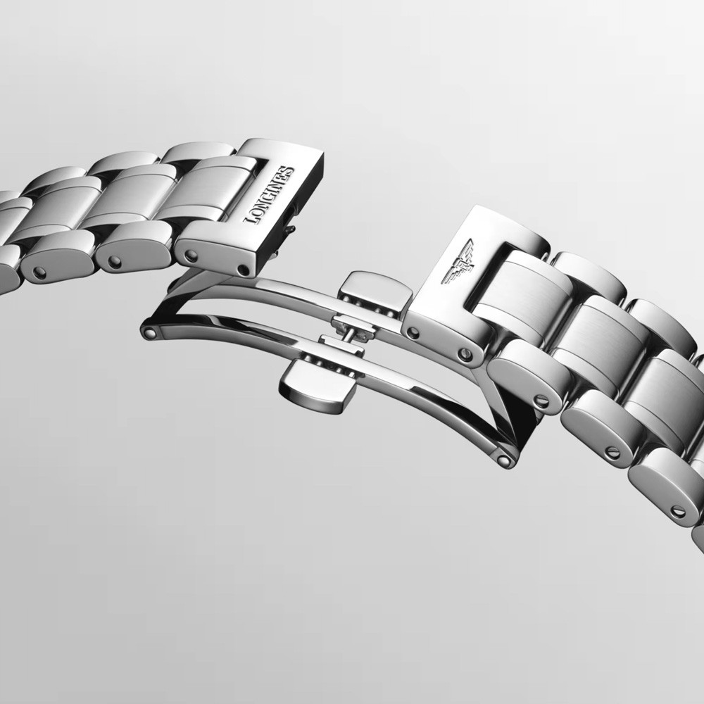 El material de la caja del reloj Longines Master Collection Chrono Moonphase reloj de hombre L2.773.4.61.6 es acero inoxidable, su color es plata, el material de la correa es acero inoxidable y su color es plata. El diámetro de la caja del reloj es 42 mm, su forma es rueda. El cristal del reloj es zafiro (sin rayones), su mecanismo es automático y su resistencia al agua es 3 atm (30 m) (sin goteo).