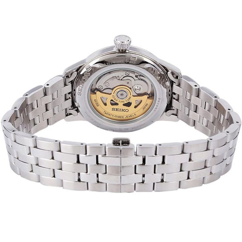El material de la caja del reloj Seiko Presage reloj de hombre SRPB47J1 es acero inoxidable, su color es plata, el material de la correa es acero inoxidable y su color es plata. El diámetro de la caja del reloj es 41 mm, su forma es rueda. El cristal del reloj es cristal (difícil de rayar), su mecanismo es automático y su resistencia al agua es 5 atm (50 m) (altamente resistente a caídas).