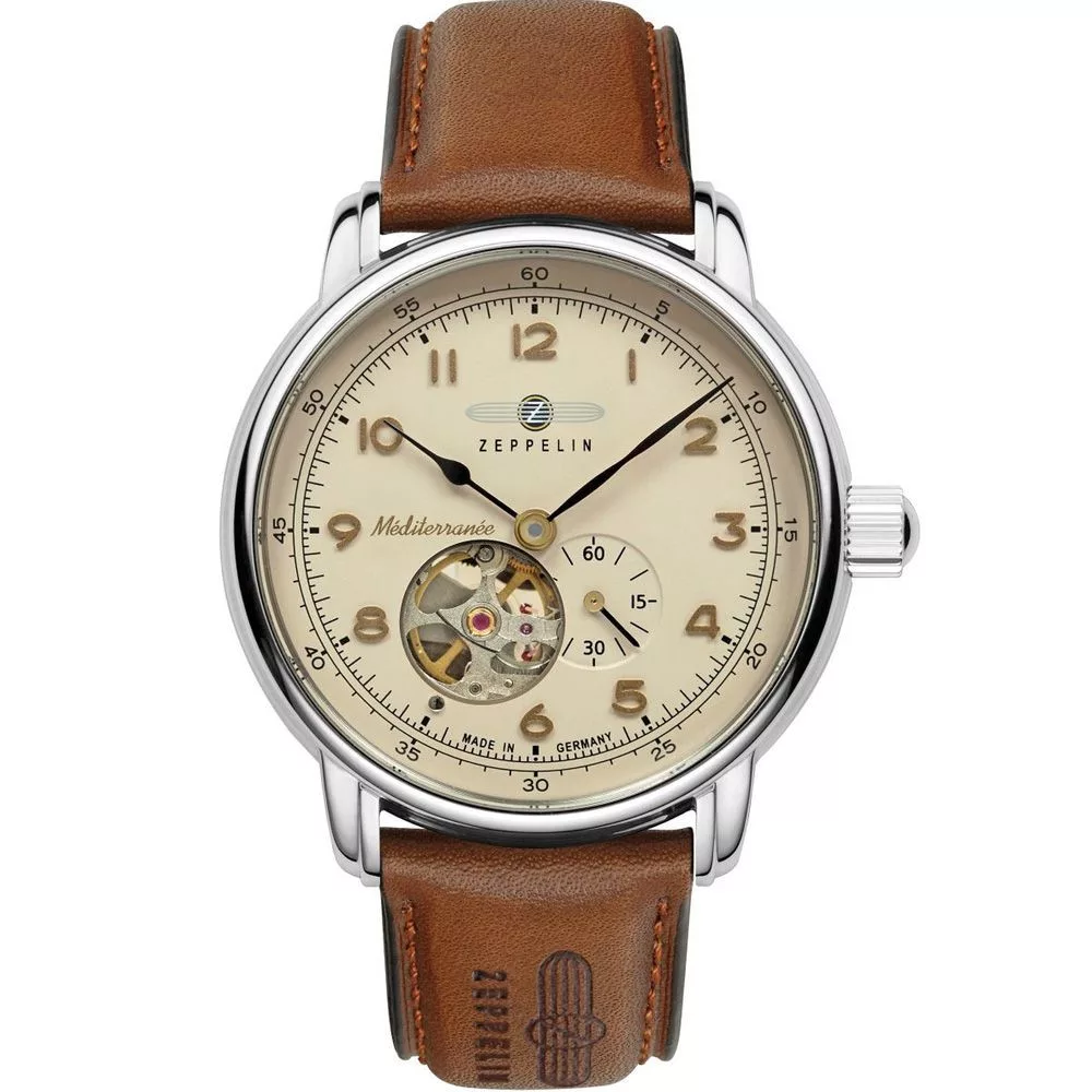 El material de la caja del reloj Zeppelin 100 Yahre Méditerranée reloj de hombre 9666-5 es acero inoxidable, su color es plata, el material de la correa es cuero y su color es marrón. El diámetro de la caja del reloj es 41 mm, su forma es rueda. El cristal del reloj es cristal (difícil de rayar), su mecanismo es automático y su resistencia al agua es 5 atm (50 m) (altamente resistente a caídas).