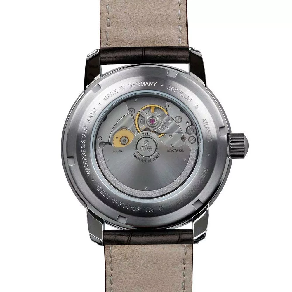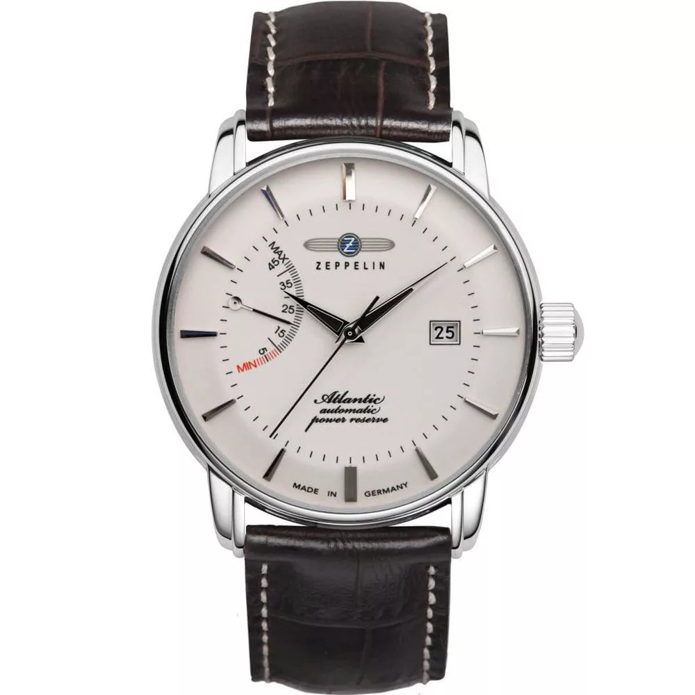 El material de la caja del reloj Zeppelin Atlantic reloj de hombre 8462-5 es acero inoxidable, su color es plata, el material de la correa es cuero y su color es marrón. El diámetro de la caja del reloj es 42 mm, su forma es rueda. El cristal del reloj es cristal (difícil de rayar), su mecanismo es cuarzo y su resistencia al agua es 5 atm (50 m) (altamente resistente a caídas).