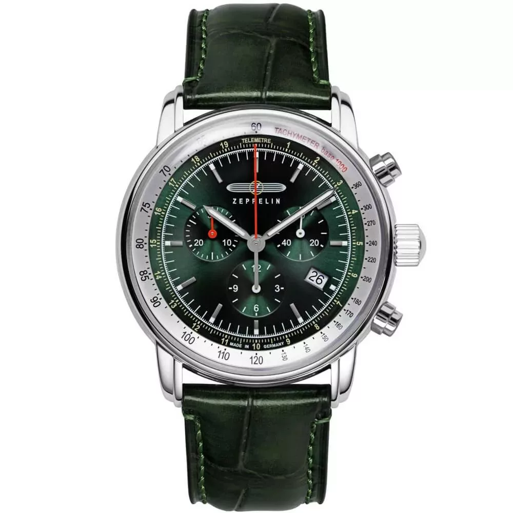 El material de la caja del reloj Zeppelin LZ14 Marine reloj de hombre 8888-4 es acero inoxidable, su color es plata, el material de la correa es cuero y su color es verde. El diámetro de la caja del reloj es 43 mm, su forma es rueda. El cristal del reloj es cristal (difícil de rayar), su mecanismo es cuarzo y su resistencia al agua es 5 atm (50 m) (altamente resistente a caídas).