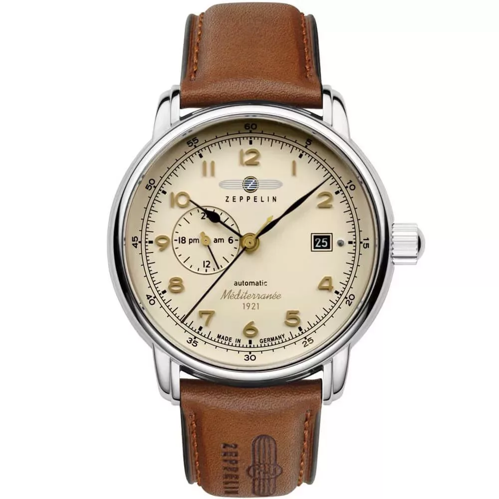El material de la caja del reloj Zeppelin Méditerranée reloj de hombre 9668-5 es acero inoxidable, su color es plata, el material de la correa es cuero y su color es marrón. El diámetro de la caja del reloj es 41 mm, su forma es rueda. El cristal del reloj es cristal (difícil de rayar), su mecanismo es automático y su resistencia al agua es 5 atm (50 m) (altamente resistente a caídas).