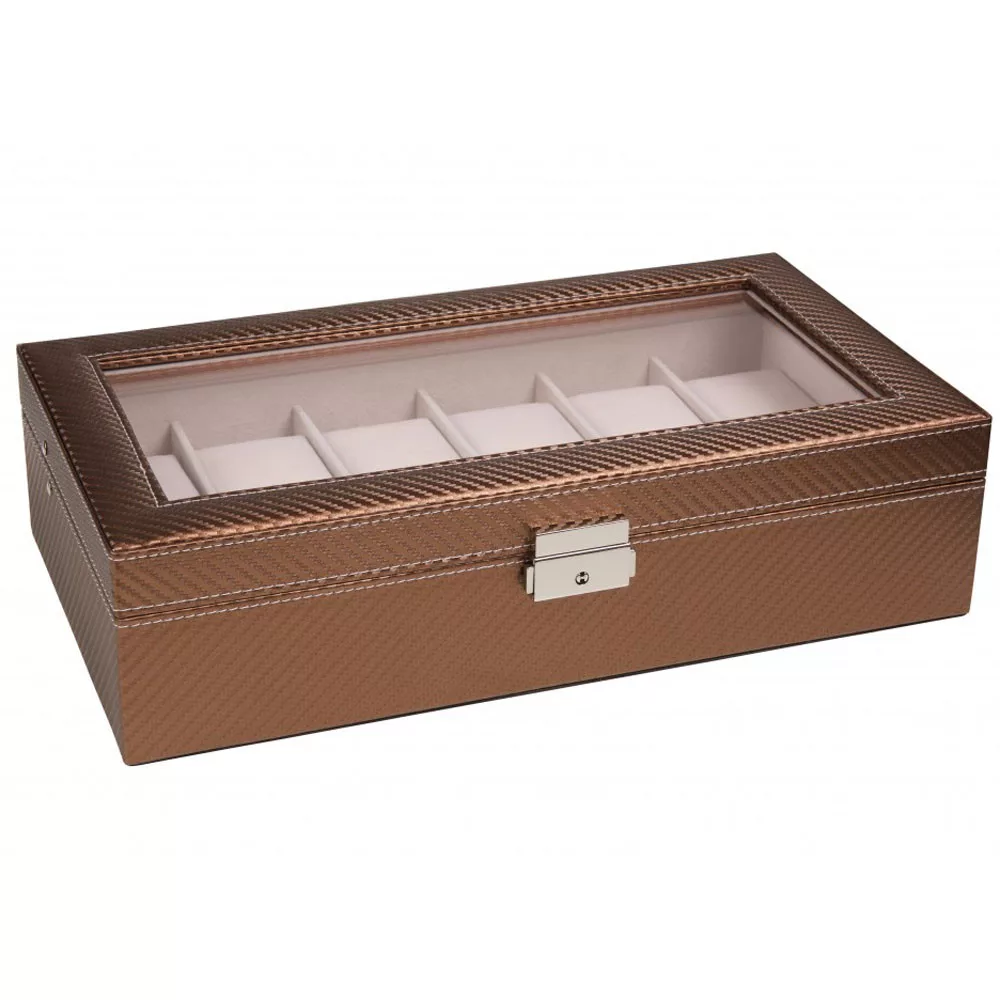 Edelwolle Bronzbarna színű karbon mintás bőr óratartó doboz 12 órának